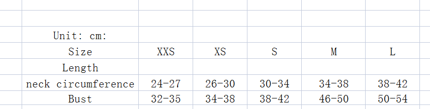 XXS: 24–27cm (chest) + 32–35cm (girth)